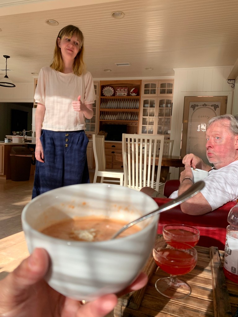 We are always so fortunate when Daisy decides to cook dinner. This one featured tomato bisque, tanqueray beverages, and french music. It was auspicious.