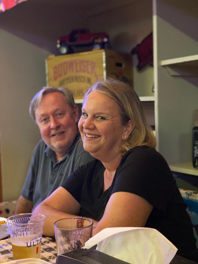 Saturday was a really nice day. We started the day fresh with a visit to the MAD Farmer’s market. Rudy and Daisy got fancy coffee from the coffee cart. We bought a really cool inlaid wood charcuterie board, canned dill pickles, and a hoppin’ john hot sauce for our black-eyed peas that I haven’t seen since I was a kid, so I cannot wait to try it! After we went to Off the Rail for brunch. This place never disappoints! And we got to visit with the couple outside on the patio who brings their big green parrot River every so often out. Afterwards, we strolled around the square and hit up most of the shops and made a few purchases. We headed home and took a break. That evening Rudy and I went to the pool at the club. The first time all summer. It was hot out of the pool and warm it in, but it was one of the coolest things we could do on one of the hottest days of the year. Plus, they make cool drinks and it was fun catching up with some friends. After we drove our golf cart home, and cleaned up and popped in the car and all went to the South Arkansas Arts Center’s Juried Art Show reception. We caught the last thirty minutes. We loved all the art that the judge Taylor Jasper from The Momentary selected. It was really a cool and well done show, especially if you enjoy Contemporary and Modern art. I was impressed. We bought a piece from Marla Tomlinson, whom I have admired for a couple of years. It has lightening bolts on it, so Rudy is the one who really loved it and selected the piece. We are excited. We also picked up our Razorback piece from the last show. After the reception, we drove out to Fernando’s and had supper. We ran into our friends from the night before, which was a neat coincidence. The food was good and so was the day!
