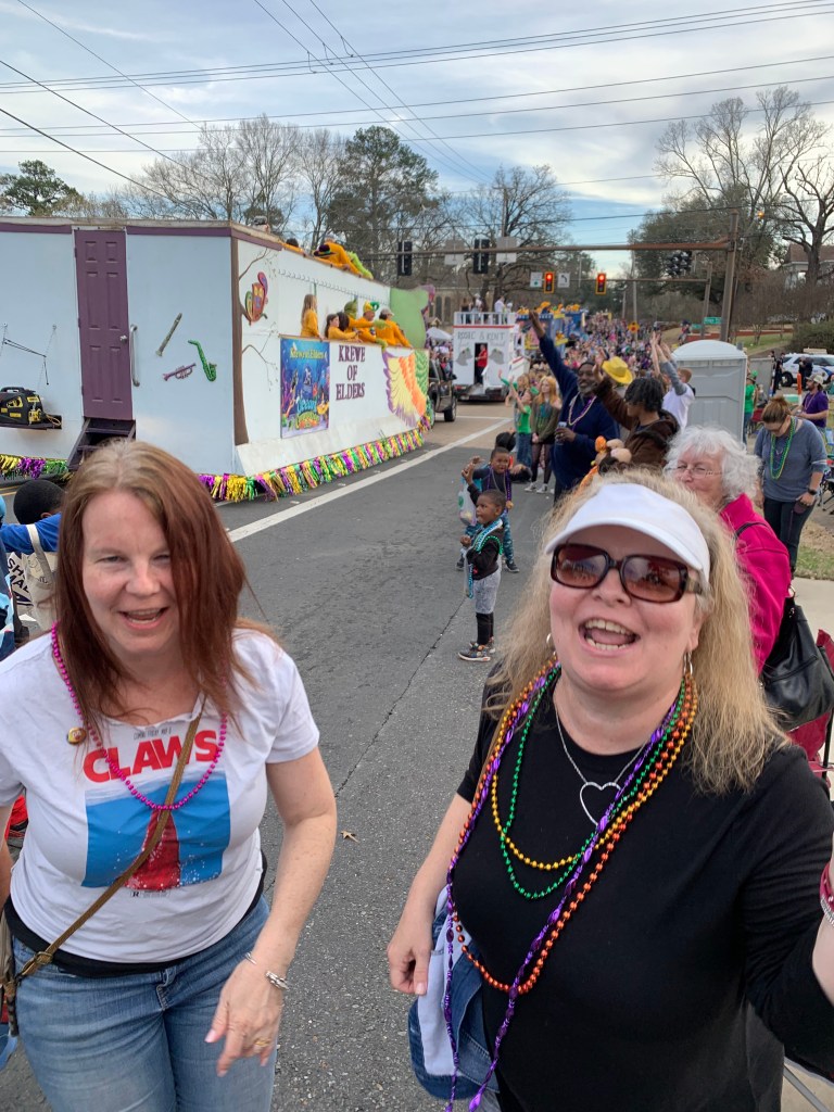 Afterwards we went over to the Mardi Gras parade. The last one of the season. I cannot remember the name of the parade. However, my sister said she loves this one the most, as after having already ridden in previous parades, many floats will take a “last spin” for the season in this parade. It is big, family friendly, and they are out to have a good time. And so were we!